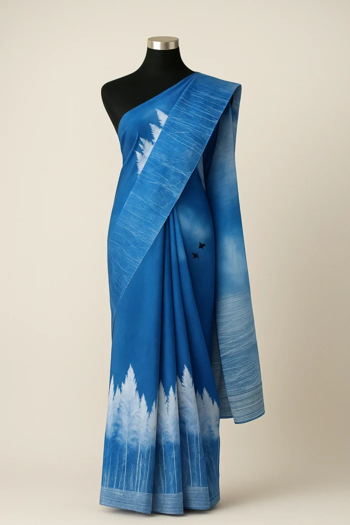 নীল কালারের মাঝে সাদা কাশফুল, তার সাথে উড়ন্ত পাখির ঝাক। অসাধারণ লুকে সাজিয়ে তুলবে আপনার প্রিয়জনকে।
